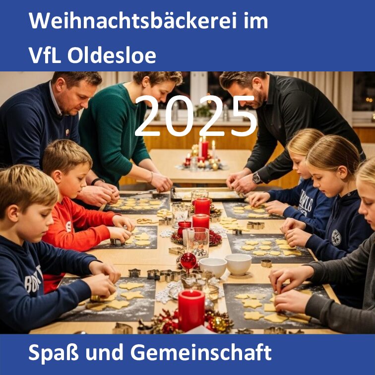 Auch in diesem Jahr lädt der VfL Oldesloe wieder zur fröhlichen Weihnachtsbäckerei ein! Alle Kinder im Alter von 6 bis 12 Jahren, die Vereinsmitglieder sind, können an zwei liebevoll gestalteten Adventsnachmittagen gemeinsam backen, verzieren und eine schöne Zeit im Vereinsheim erleben.
