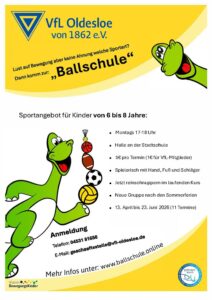 Wir vom VfL Oldesloe freuen uns riesig, unser innovatives Angebot „Ballschule für Kinder (6 -8 Jahre)“ geht in die Verlängerung.